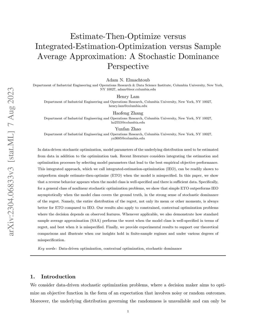 Estimate-Then-Optimize versus Integrated-Estimation-Optimization versus Sample Average Approximation: A Stochastic Dominance Perspective