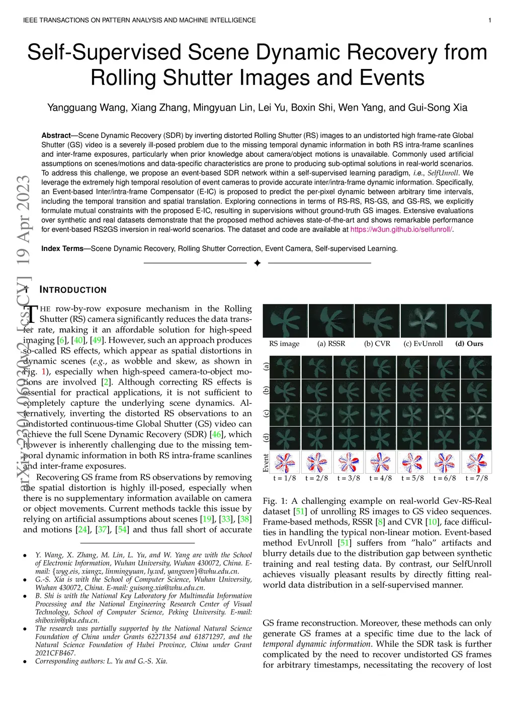 Self-Supervised Scene Dynamic Recovery from Rolling Shutter Images and
