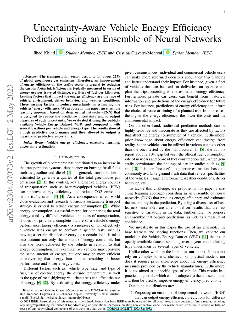 Uncertainty-Aware Vehicle Energy Efficiency Prediction using an Ensemble