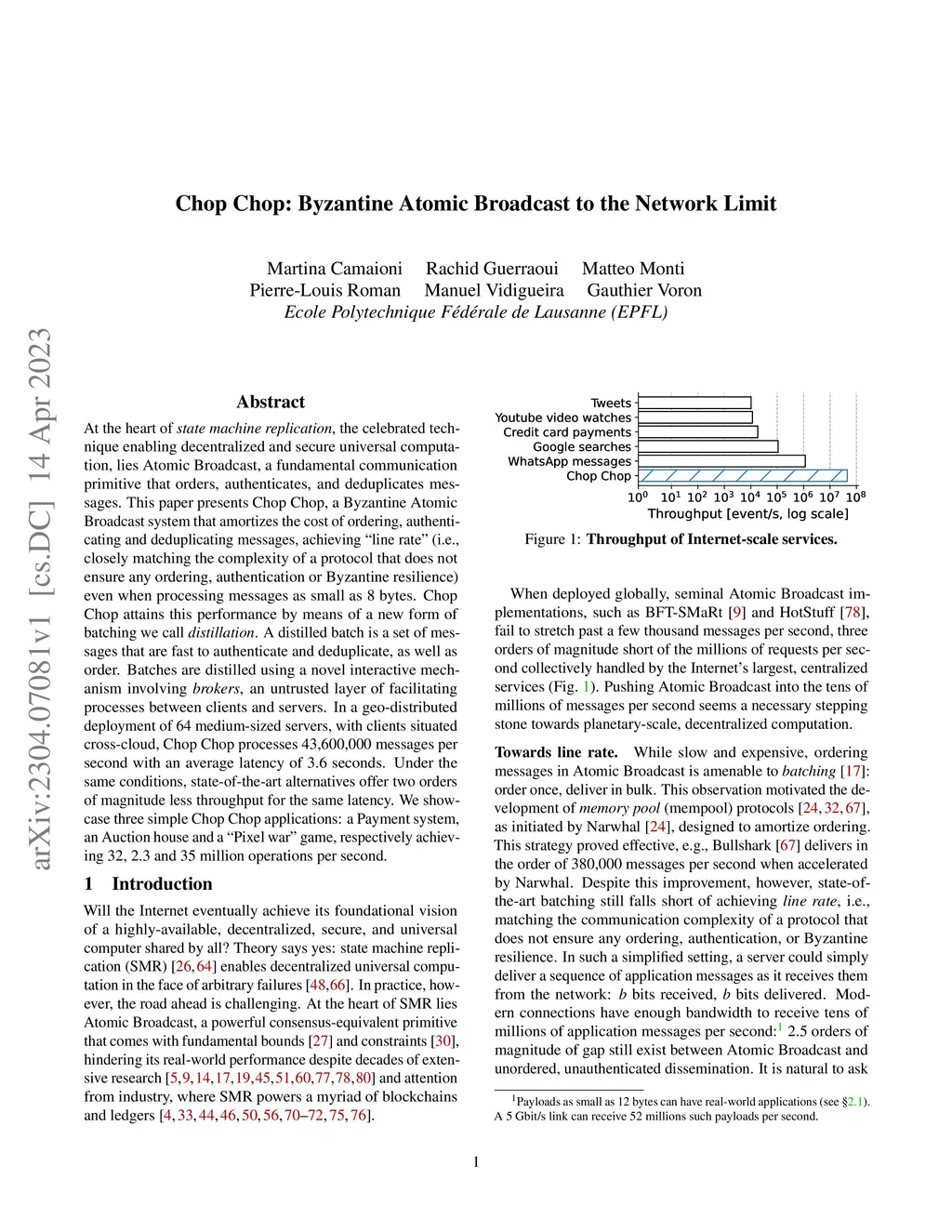 Chop Chop: Byzantine Atomic Broadcast to the Network Limit