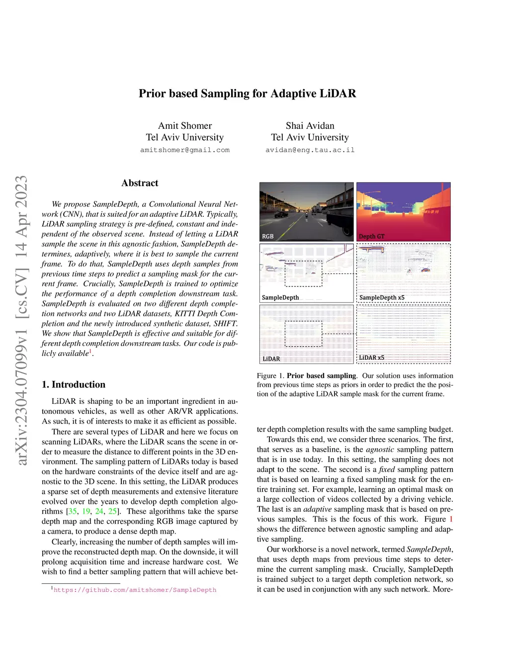 We propose SampleDepth, a Convolutional Neural Network (CNN), that is suited for an adaptive LiDAR. Typically,LiDAR sampling strategy is pre-defined, constant and independent of the observed scene. Instead of letting a LiDAR sample the scene in this agnostic fashion, SampleDepth determines, adaptively, where it is best to sample the current frame. To do that, SampleDepth uses depth samples from previous time steps to predict a sampling mask for the current frame. Crucially, SampleDepth is trained to optimize the performance of a depth completion downstream task. SampleDepth is evaluated on two different depth completion networks and two LiDAR datasets, KITTI Depth Completion and the newly introduced synthetic dataset, SHIFT. We show that SampleDepth is effective and suitable for different depth completion downstream tasks.
