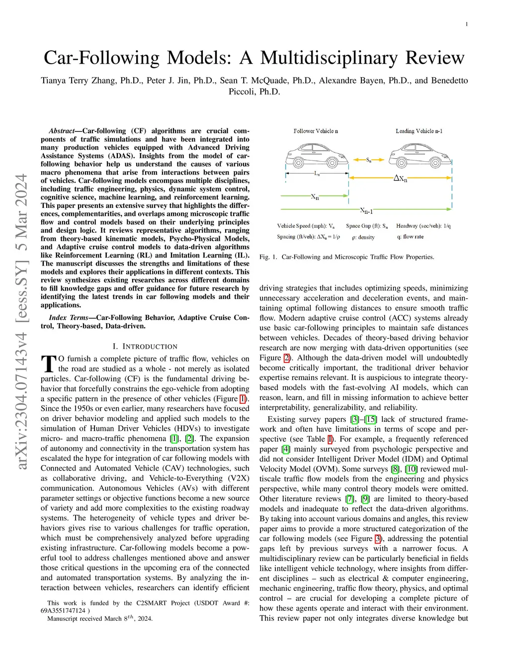 Car-following (CF) algorithms are crucial components of traffic simulations and have been integrated into many production vehicles equipped with Advanced Driving Assistance Systems (ADAS). Insights from the model of car-following behavior help us understand the causes of various macro phenomena that arise from interactions between pairs of vehicles. Car-following models encompass multiple disciplines, including traffic engineering, physics, dynamic system control, cognitive science, machine learning, and reinforcement learning. This paper presents an extensive survey that highlights the differences, complementarities, and overlaps among microscopic traffic flow and control models based on their underlying principles and design logic. It reviews representative algorithms, ranging from theory-based kinematic models, Psycho-Physical Models, and Adaptive cruise control models to data-driven algorithms like Reinforcement Learning (RL) and Imitation Learning (IL). The manuscript discusses the strengths and limitations of these models and explores their applications in different contexts. This review synthesizes existing researches across different domains to fill knowledge gaps and offer guidance for future research by identifying the latest trends in car following models and their applications.