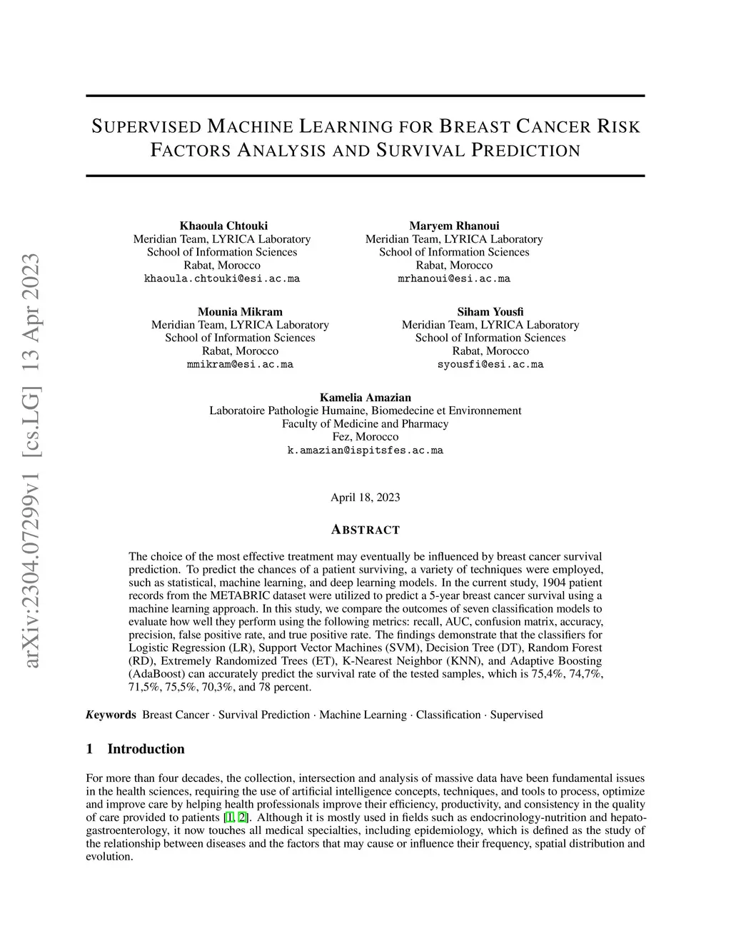 Supervised Machine Learning for Breast Cancer Risk Factors Analysis and