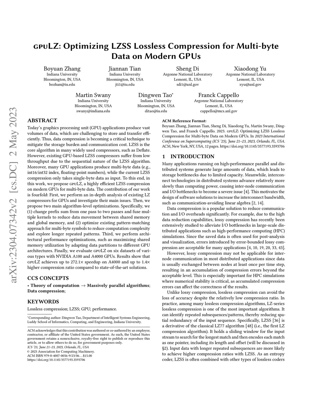 GPULZ: Optimizing LZSS Lossless Compression for Multi-byte Data on