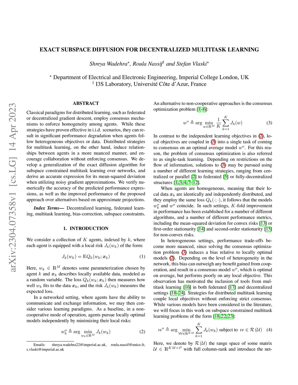 Exact Subspace Diffusion for Decentralized Multitask Learning