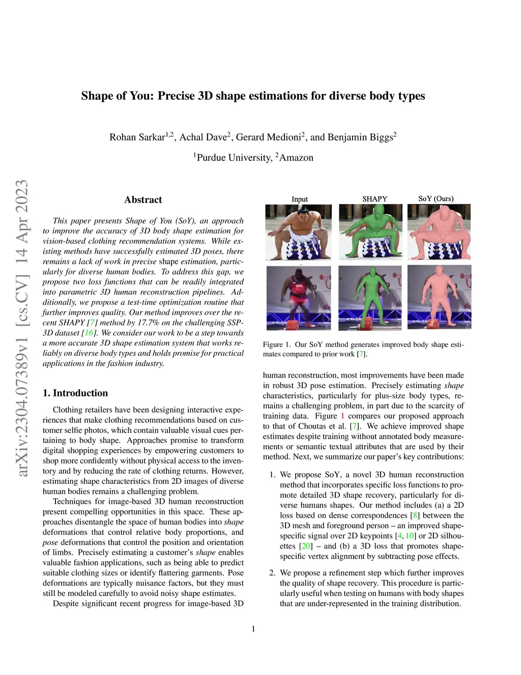 This paper presents Shape of You (SoY), an approach to improve the accuracy of 3D body shape estimation for vision-based clothing recommendation systems. While existing methods have successfully estimated 3D poses, there remains a lack of work in precise shape estimation, particularly for diverse human bodies. To address this gap, we propose two loss functions that can be readily integrated into parametric 3D human reconstruction pipelines. Additionally, we propose a test-time optimization routine that further improves quality. Our method improves over the recent SHAPY method by 17.7% on the challenging SSP-3D dataset. We consider our work to be a step towards a more accurate 3D shape estimation system that works reliably on diverse body types and holds promise for practical applications in the fashion industry.