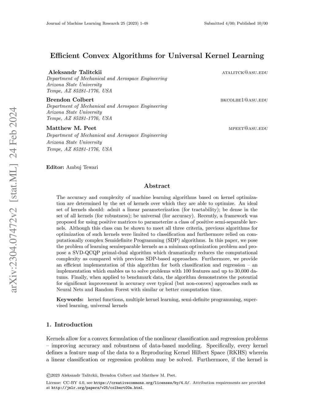 Efficient Convex Algorithms for Universal Kernel Learning