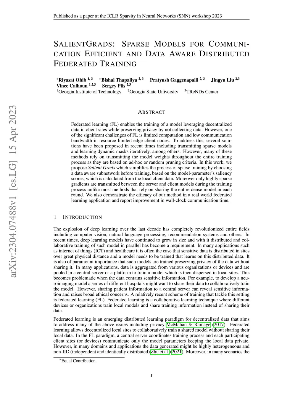 SalientGrads: Sparse Models for Communication Efficient and Data Aware