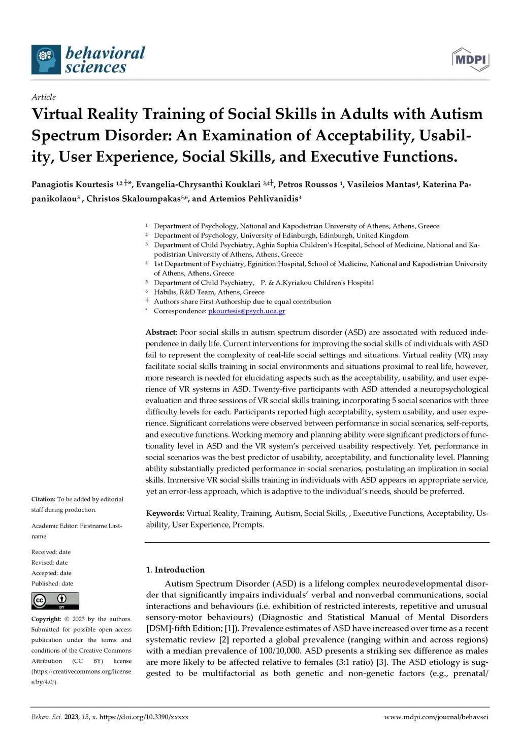 Virtual Reality Training of Social Skills in Autism Spectrum Disorder: