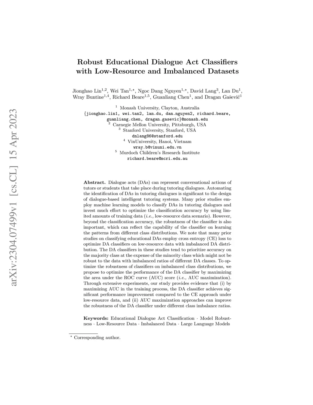 Robust Educational Dialogue Act Classifiers with Low-Resource and