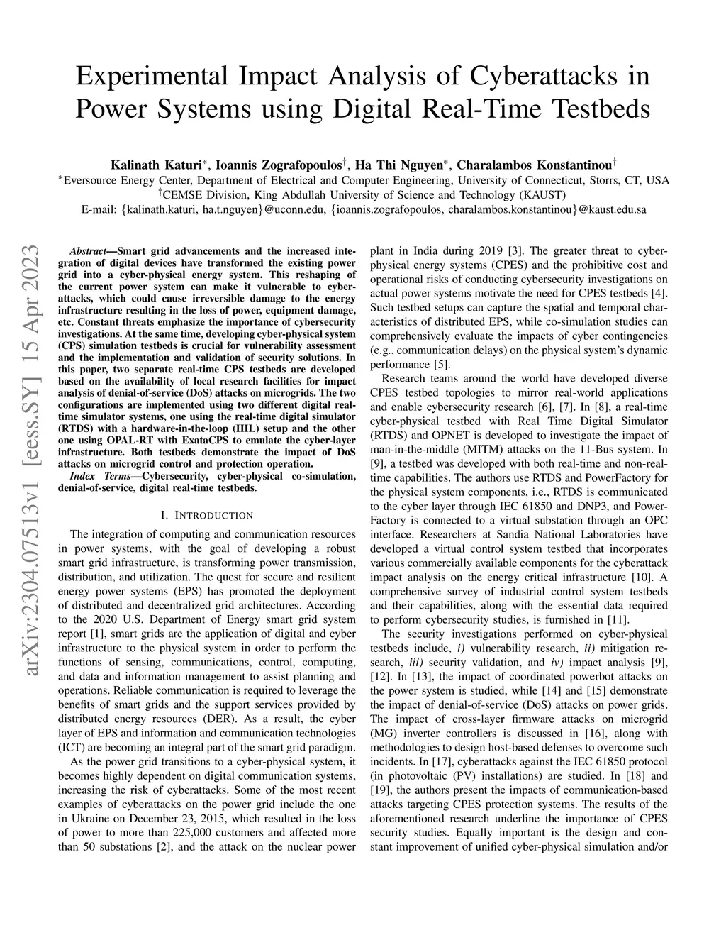 Experimental Impact Analysis of Cyberattacks in Power Systems using