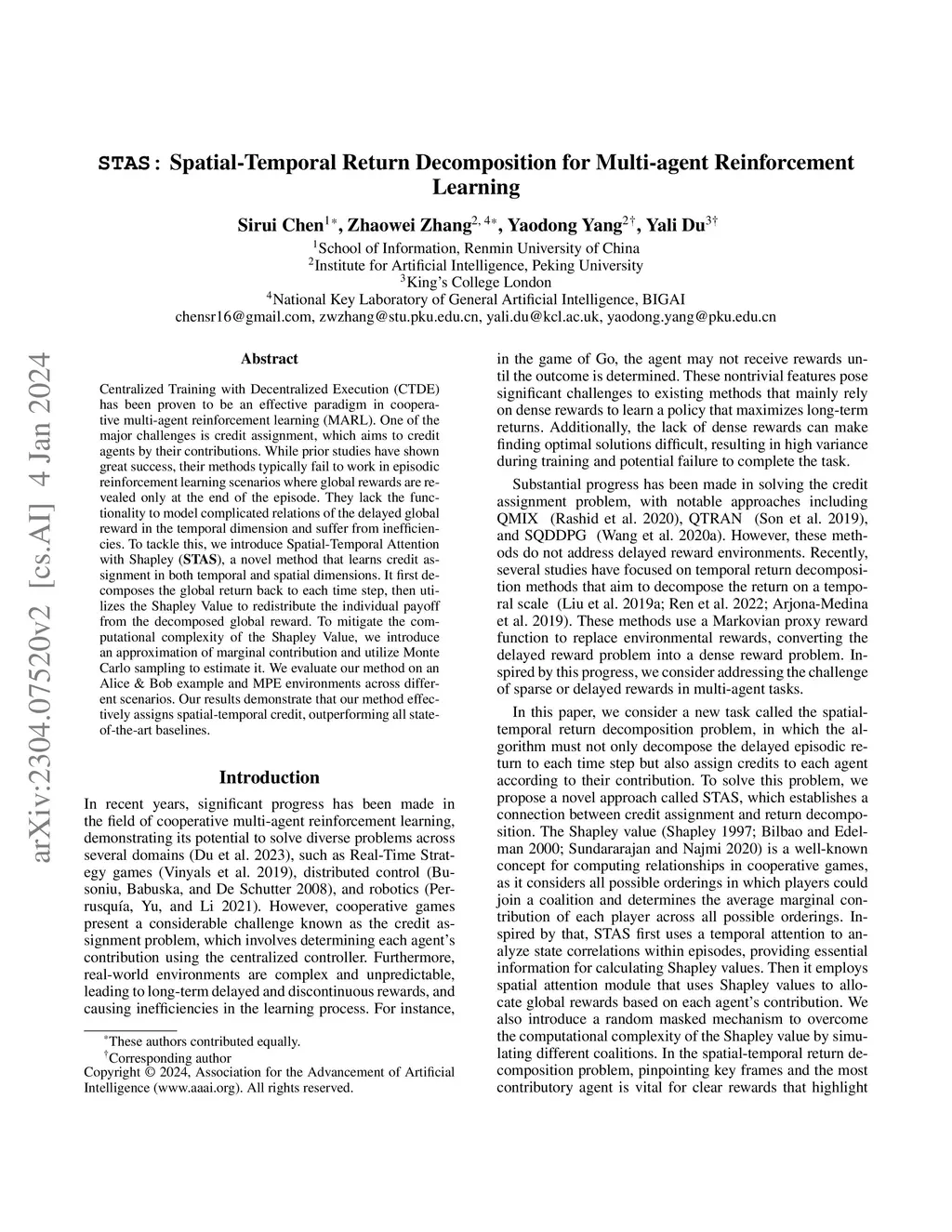 STAS: Spatial-Temporal Return Decomposition for Multi-agent