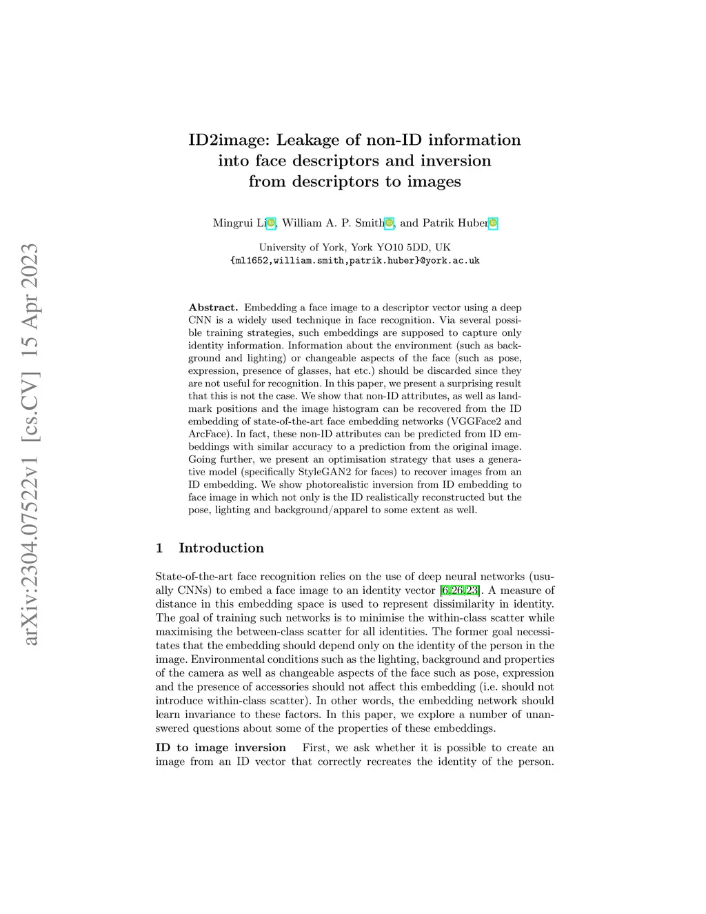 Embedding a face image to a descriptor vector using a deep CNN is a widely used technique in face recognition. Via several possible training strategies, such embeddings are supposed to capture only identity information. Information about the environment (such as background and lighting) or changeable aspects of the face (such as pose, expression, presence of glasses, hat etc.) should be discarded since they are not useful for recognition. In this paper, we present a surprising result that this is not the case. We show that non-ID attributes, as well as landmark positions and the image histogram can be recovered from the ID embedding of state-of-the-art face embedding networks (VGGFace2 and ArcFace). In fact, these non-ID attributes can be predicted from ID embeddings with similar accuracy to a prediction from the original image. Going further, we present an optimisation strategy that uses a generative model (specifically StyleGAN2 for faces) to recover images from an ID embedding. We show photorealistic inversion from ID embedding to face image in which not only is the ID realistically reconstructed but the pose, lighting and background/apparel to some extent as well.