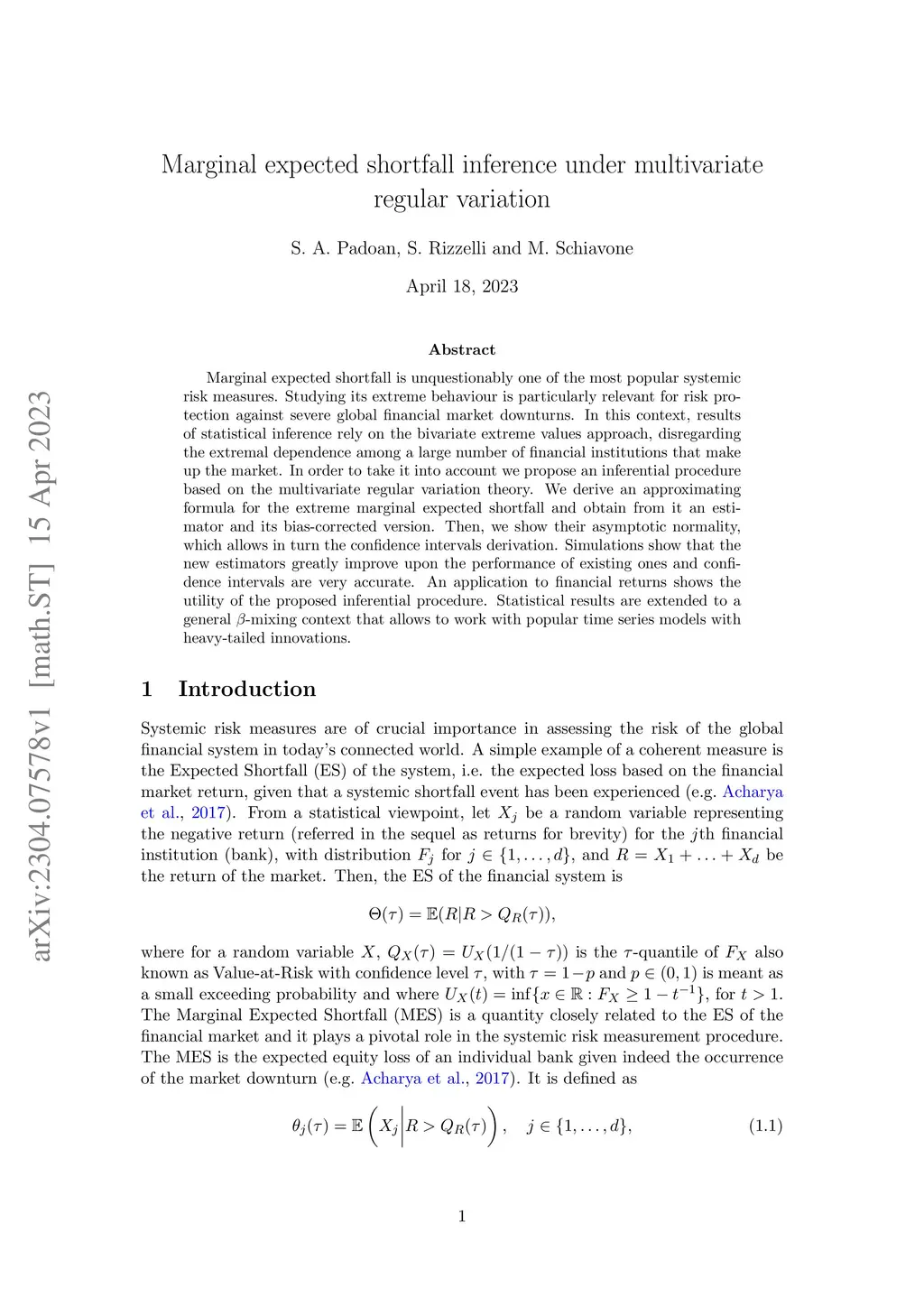 Marginal expected shortfall is unquestionably one of the most popular systemic risk measures. Studying its extreme behaviour is particularly relevant for risk protection against severe global financial market downturns. In this context, results of statistical inference rely on the bivariate extreme values approach, disregarding the extremal dependence among a large number of financial institutions that make up the market. In order to take it into account we propose an inferential procedure based on the multivariate regular variation theory. We derive an approximating formula for the extreme marginal expected shortfall and obtain from it an estimator and its bias-corrected version. Then, we show their asymptotic normality, which allows in turn the confidence intervals derivation. Simulations show that the new estimators greatly improve upon the performance of existing ones and confidence intervals are very accurate. An application to financial returns shows the utility of the proposed inferential procedure. Statistical results are extended to a general -mixing context that allows to work with popular time series models with heavy-tailed innovations.