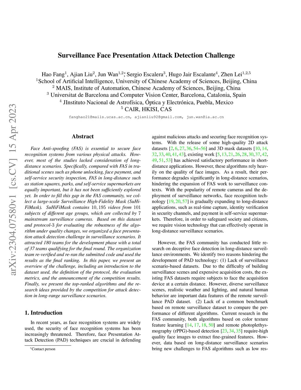 Surveillance Face Presentation Attack Detection Challenge