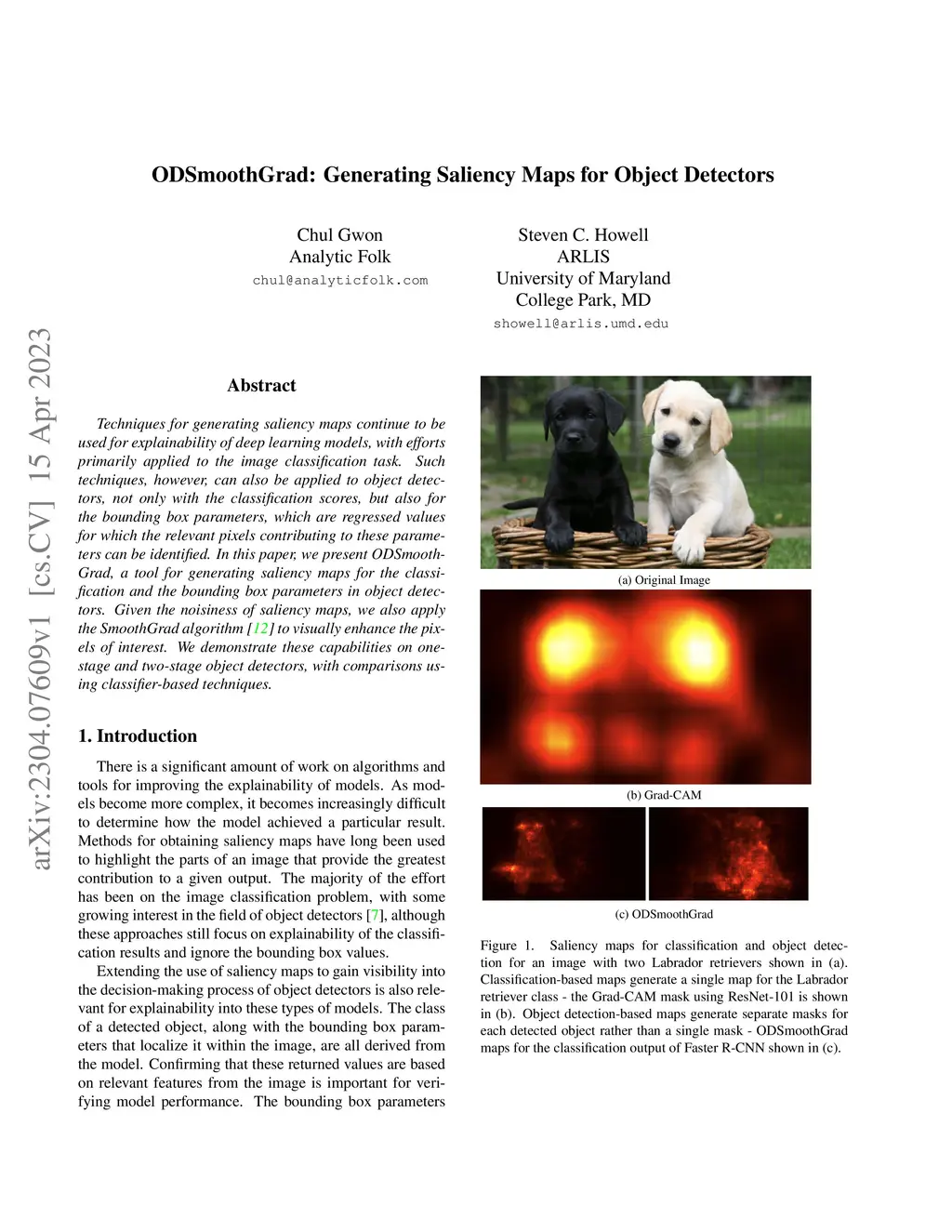 Techniques for generating saliency maps continue to be used for explainability of deep learning models, with efforts primarily applied to the image classification task. Such techniques, however, can also be applied to object detectors, not only with the classification scores, but also for the bounding box parameters, which are regressed values for which the relevant pixels contributing to these parameters can be identified. In this paper, we present ODSmoothGrad, a tool for generating saliency maps for the classification and the bounding box parameters in object detectors. Given the noisiness of saliency maps, we also apply the SmoothGrad algorithm to visually enhance the pixels of interest. We demonstrate these capabilities on one-stage and two-stage object detectors, with comparisons using classifier-based techniques.