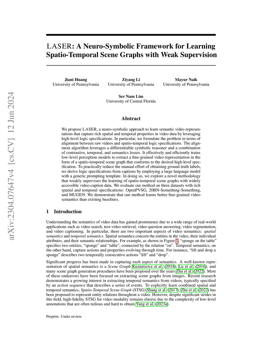 LASER: A Neuro-Symbolic Framework for Learning Spatial-Temporal Scene Graphs with Weak Supervision