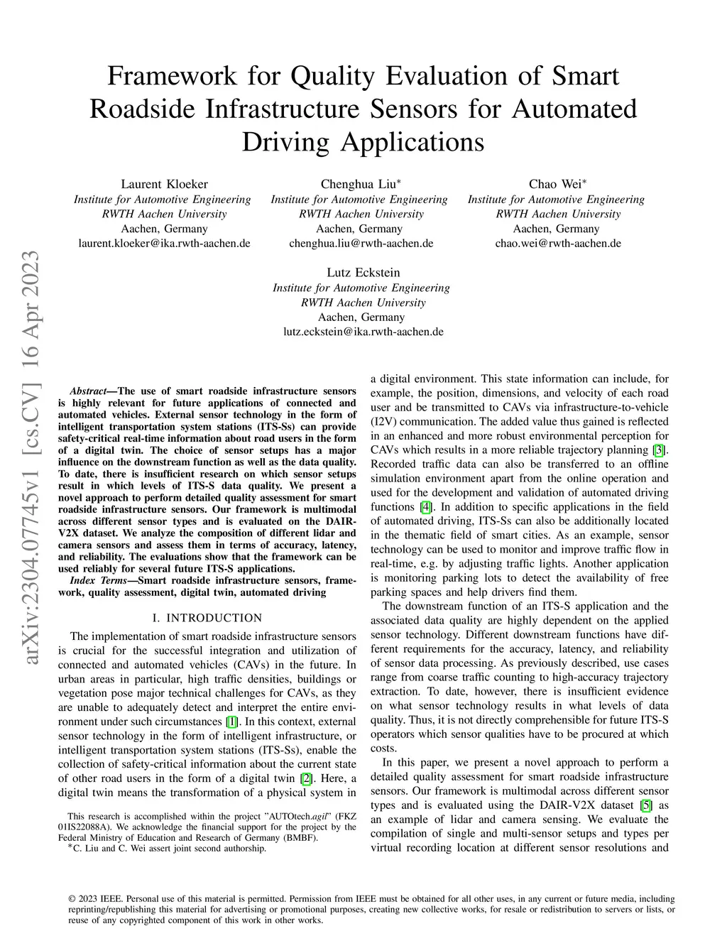 Framework for Quality Evaluation of Smart Roadside Infrastructure