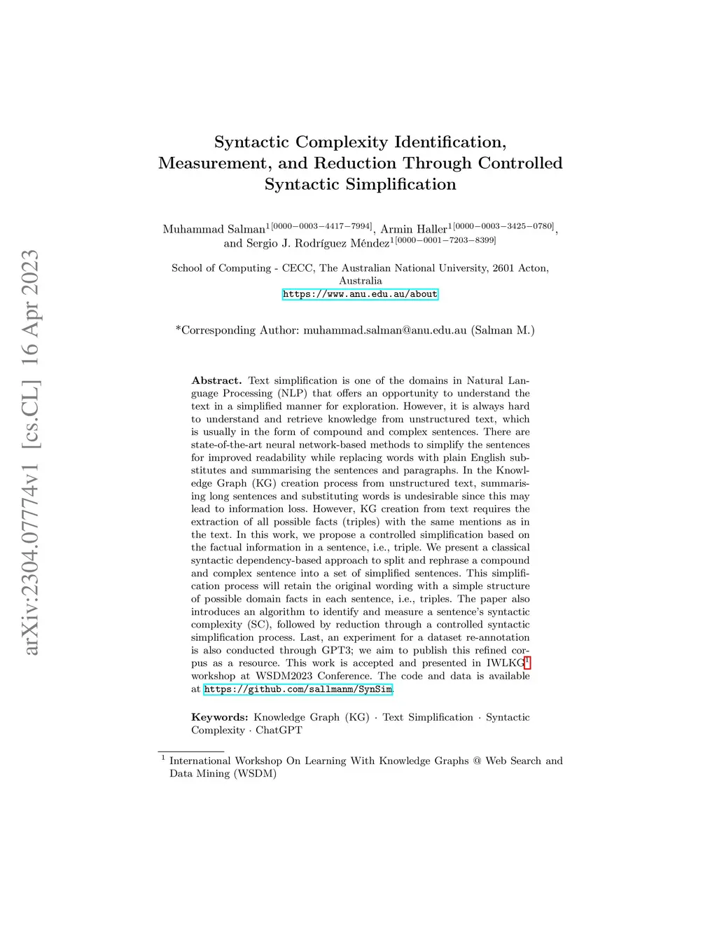 Syntactic Complexity Identification, Measurement, and Reduction Through