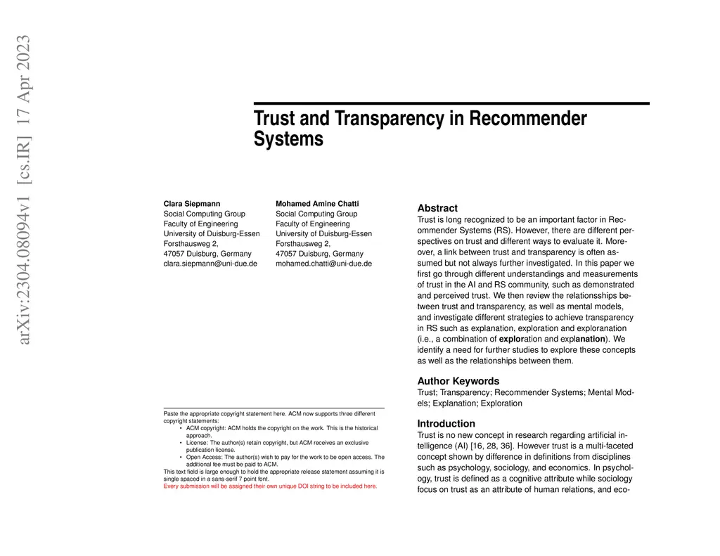 Trust is long recognized to be an important factor in Recommender Systems (RS). However, there are different perspectives on trust and different ways to evaluate it. Moreover, a link between trust and transparency is often assumed but not always further investigated. In this paper we first go through different understandings and measurements of trust in the AI and RS community, such as demonstrated and perceived trust. We then review the relationsships between trust and transparency, as well as mental models, and investigate different strategies to achieve transparency in RS such as explanation, exploration and exploranation (i.e., a combination of exploration and explanation). We identify a need for further studies to explore these concepts as well as the relationships between them.