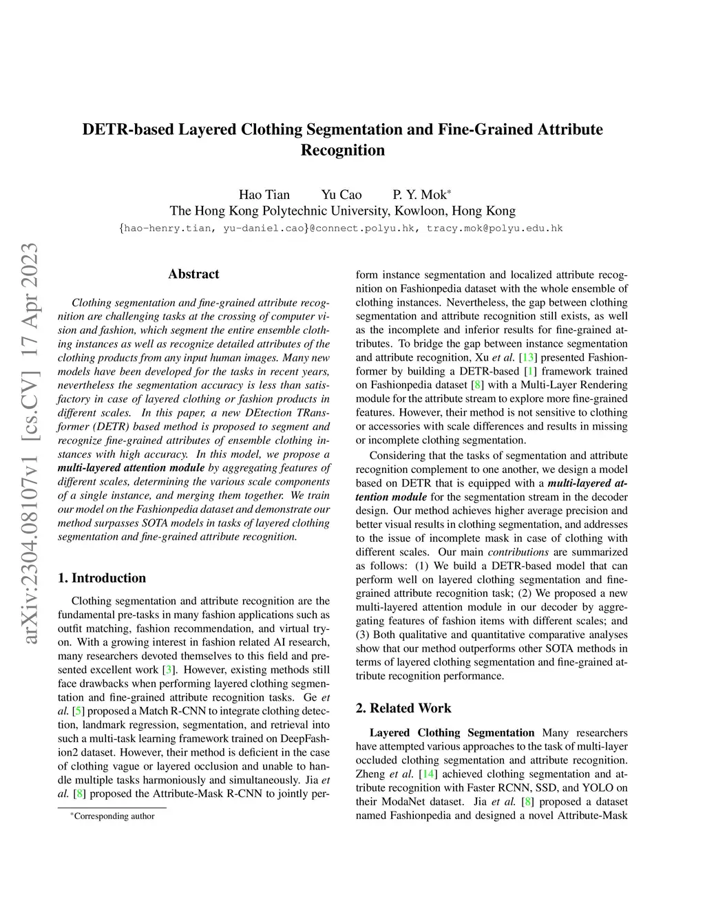 DETR-based Layered Clothing Segmentation and Fine-Grained Attribute