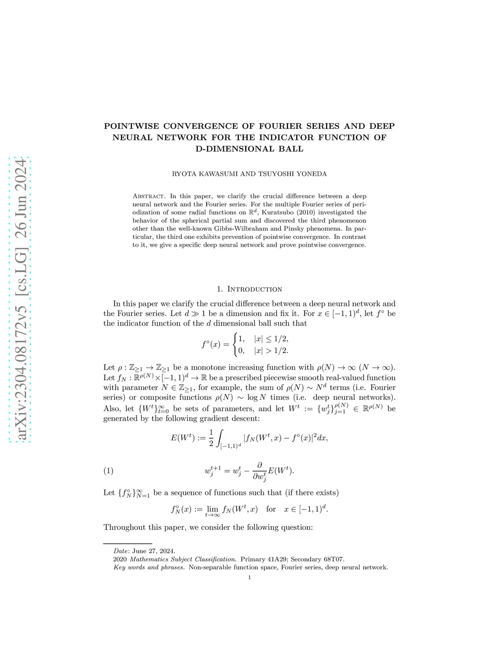 In this paper, we clarify the crucial difference between a deep neural network and the Fourier series. For the multiple Fourier series of periodization of some radial functions on , Kuratsubo (2010) investigated the behavior of the spherical partial sum and discovered the third phenomenon other than the well-known Gibbs-Wilbraham and Pinsky phenomena. In particular, the third one exhibits prevention of pointwise convergence. In contrast to it, we give a specific deep neural network and prove pointwise convergence.