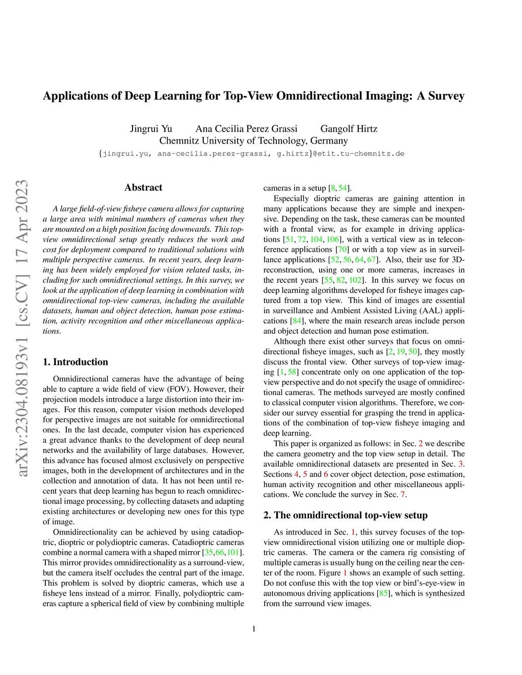 Applications of Deep Learning for Top-View Omnidirectional Imaging: A