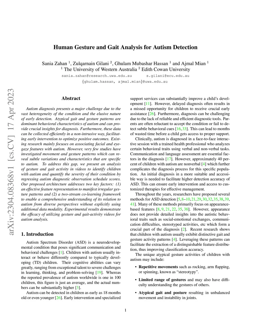Human Gesture and Gait Analysis for Autism Detection