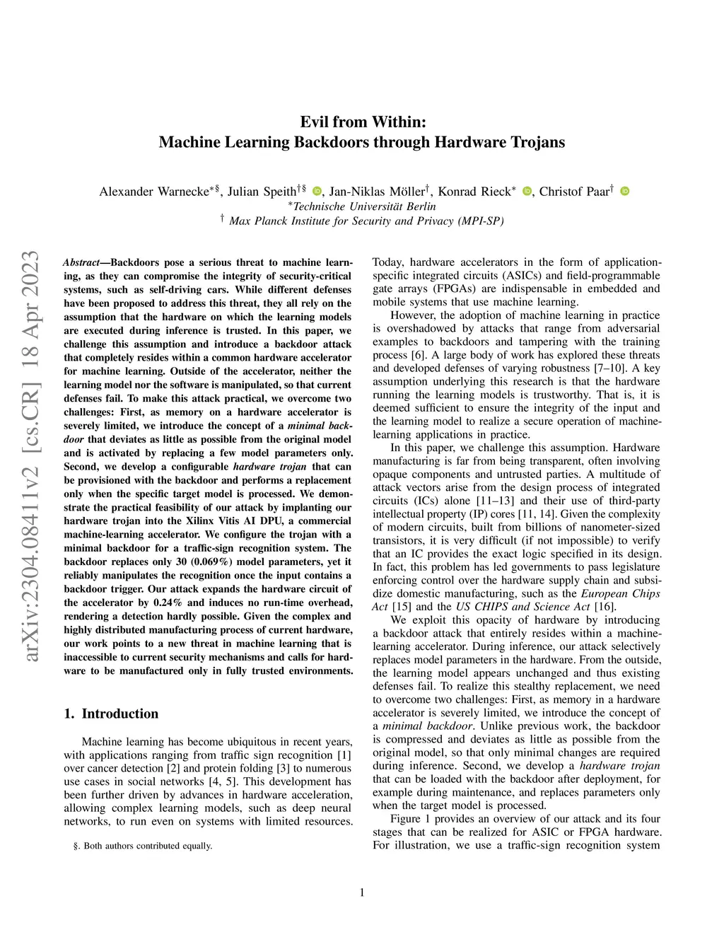 Evil from Within: Machine Learning Backdoors through Hardware Trojans