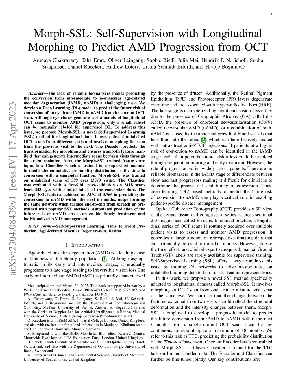 Morph-SSL: Self-Supervision with Longitudinal Morphing to Predict AMD
