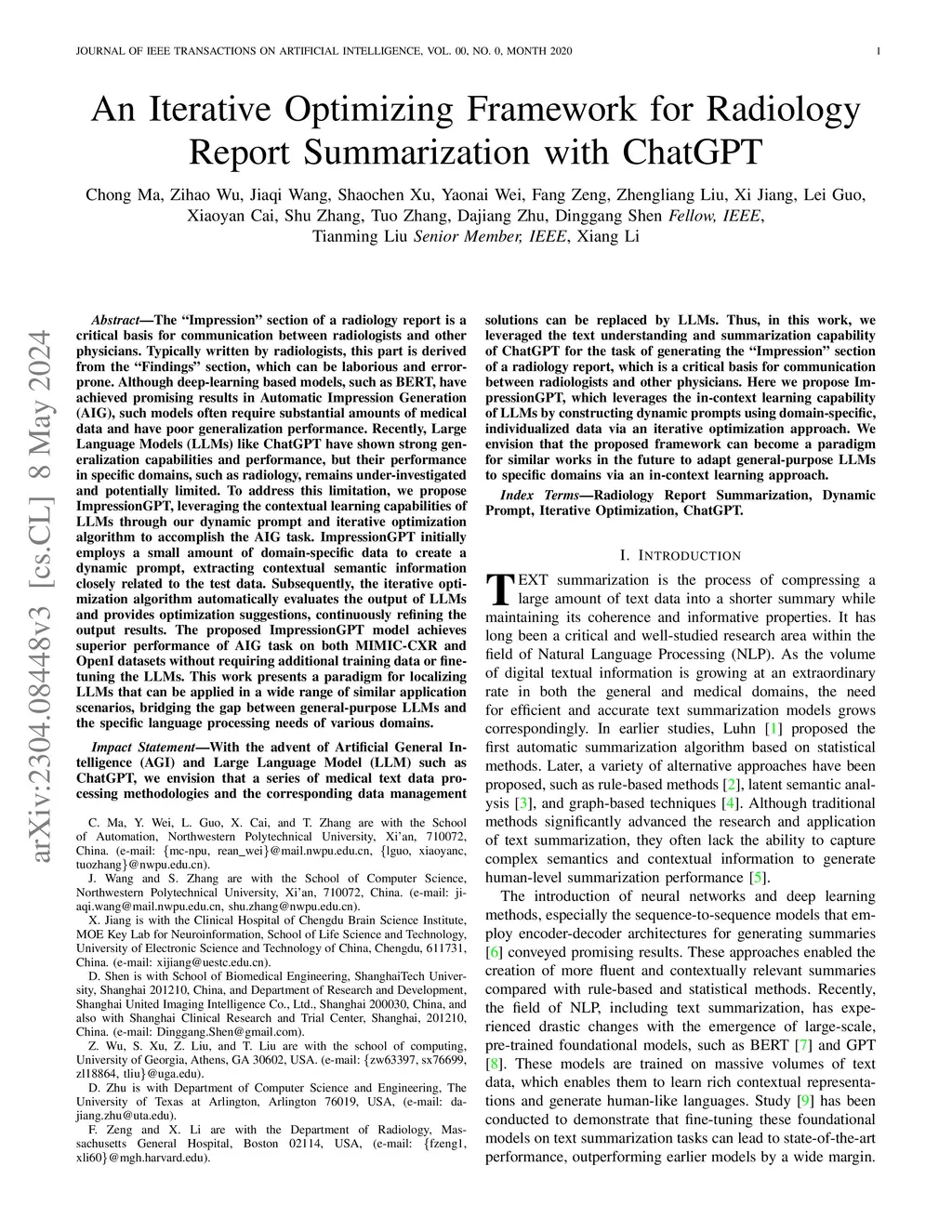 An Iterative Optimizing Framework for Radiology Report Summarization