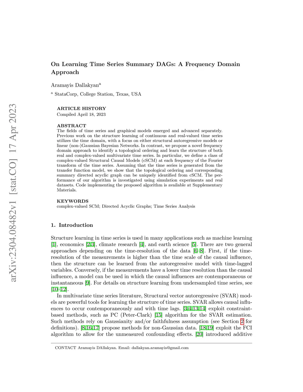 On Learning Time Series Summary DAGs: A Frequency Domain Approach