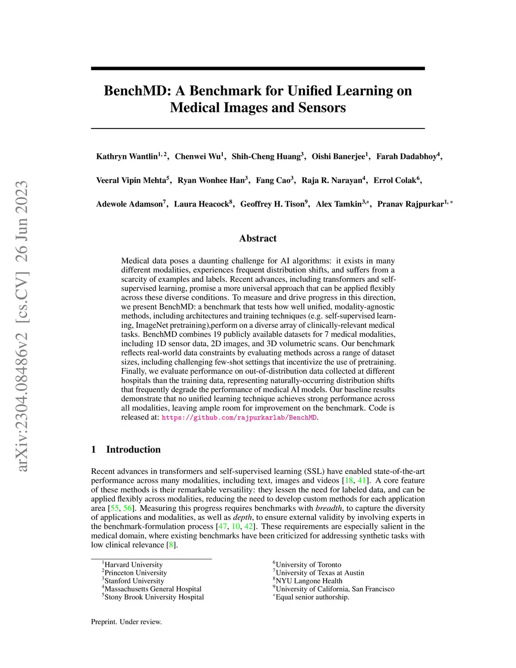 BenchMD: A Benchmark for Unified Learning on Medical Images and Sensors