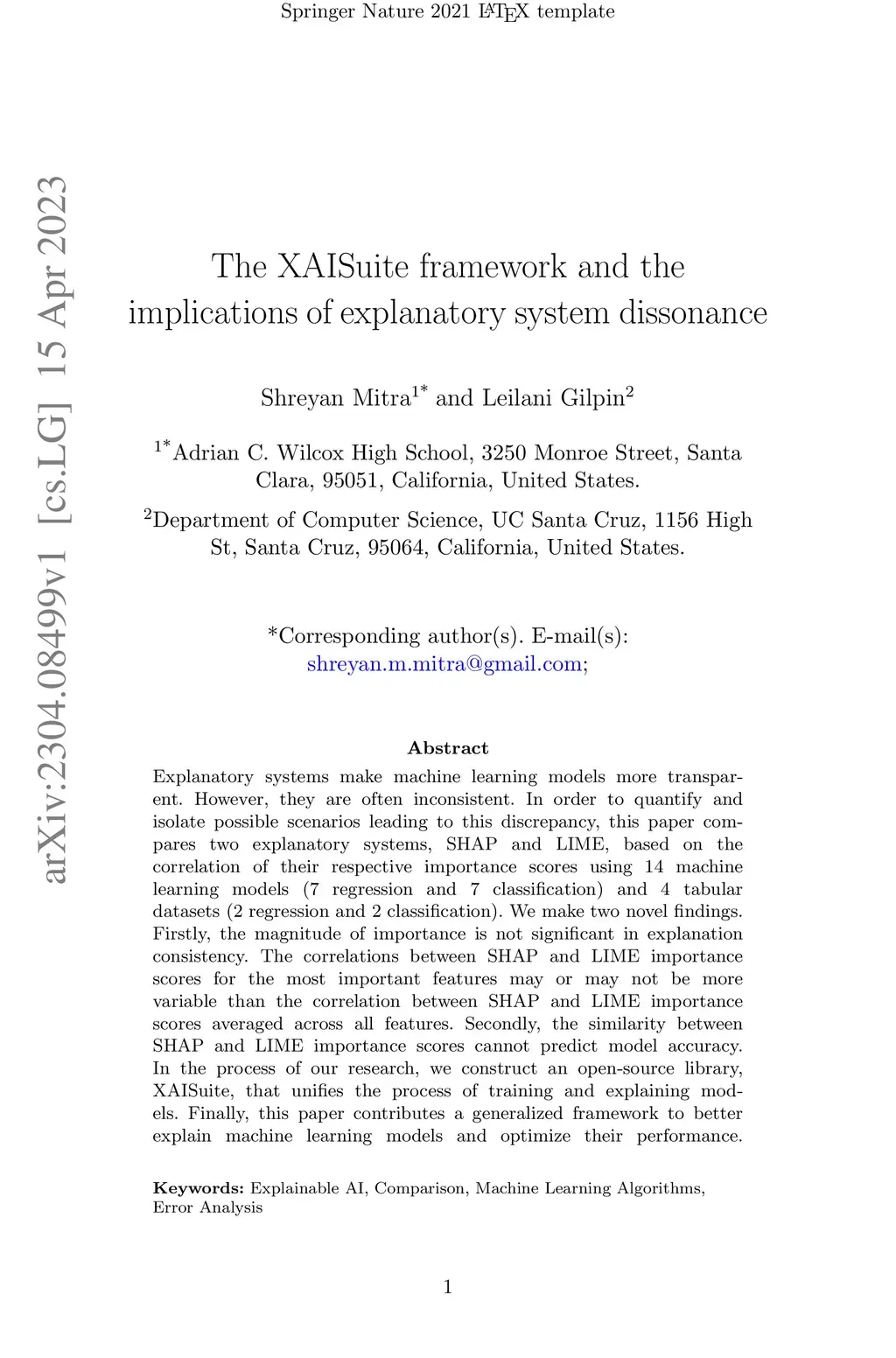 Explanatory systems make machine learning models more transparent. However, they are often inconsistent. In order to quantify and isolate possible scenarios leading to this discrepancy, this paper compares two explanatory systems, SHAP and LIME, based on the correlation of their respective importance scores using 14 machine learning models (7 regression and 7 classification) and 4 tabular datasets (2 regression and 2 classification). We make two novel findings. Firstly, the magnitude of importance is not significant in explanation consistency. The correlations between SHAP and LIME importance scores for the most important features may or may not be more variable than the correlation between SHAP and LIME importance scores averaged across all features. Secondly, the similarity between SHAP and LIME importance scores cannot predict model accuracy. In the process of our research, we construct an open-source library, XAISuite, that unifies the process of training and explaining models. Finally, this paper contributes a generalized framework to better explain machine learning models and optimize their performance.