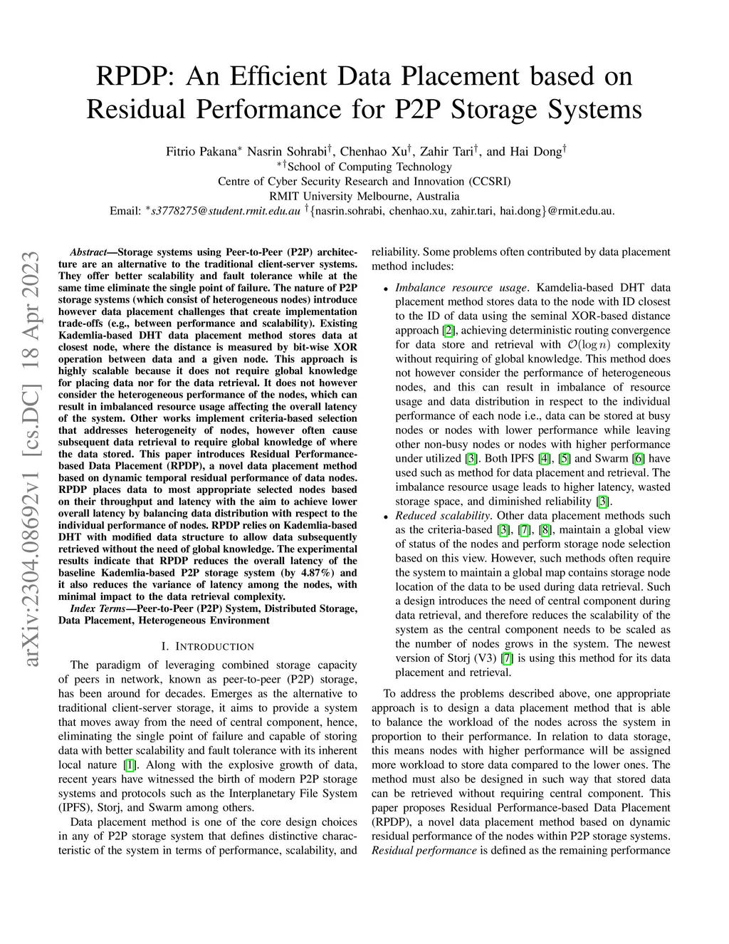 RPDP: An Efficient Data Placement based on Residual Performance for P2P