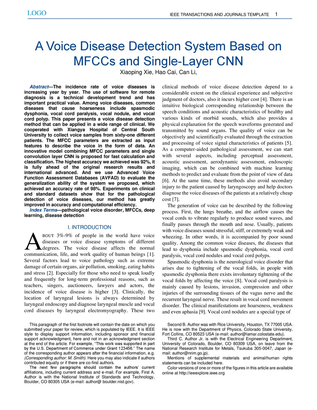A Voice Disease Detection Method Based on MFCCs and Shallow CNN