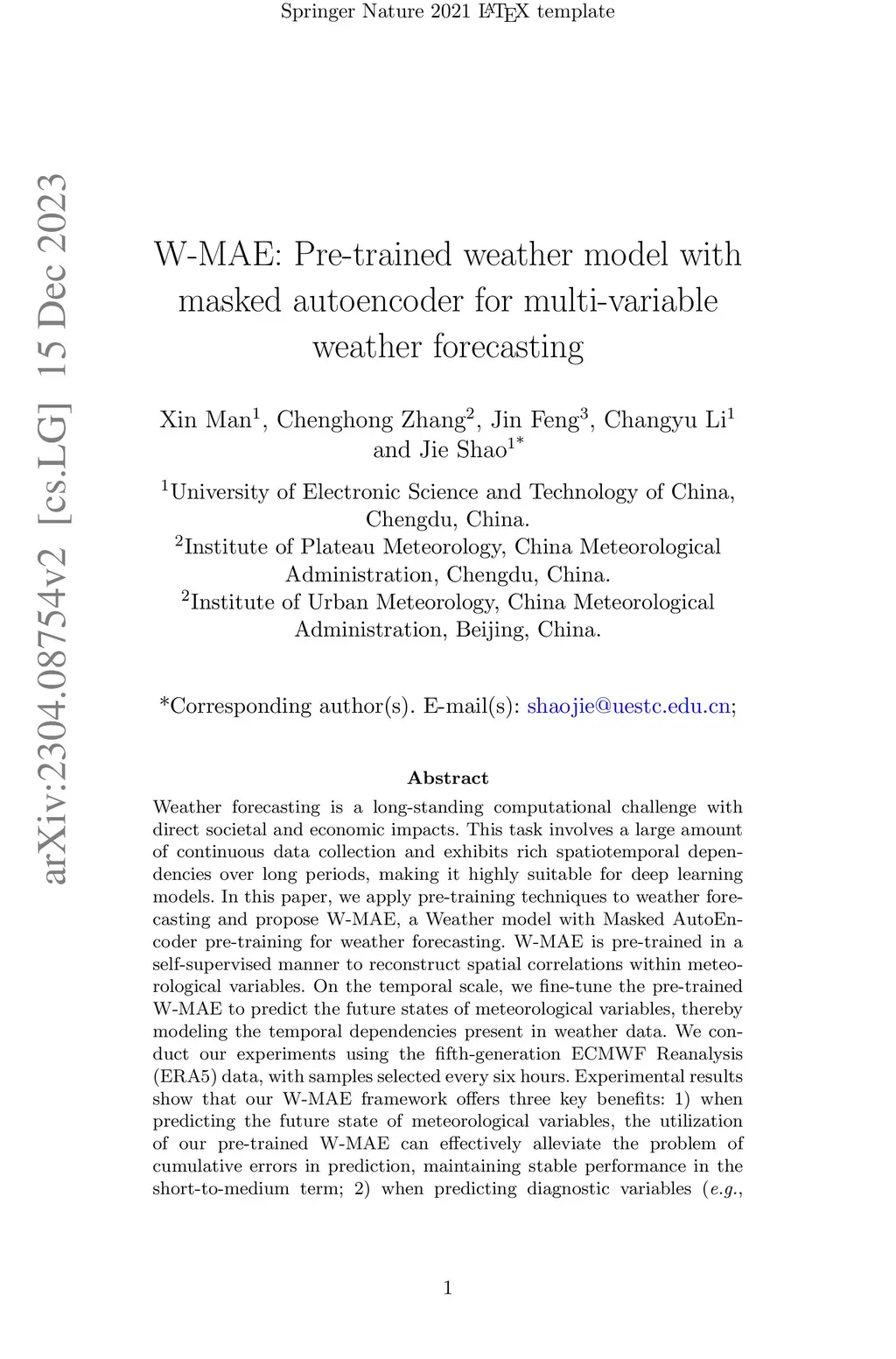 W-MAE: Pre-trained weather model with masked autoencoder for