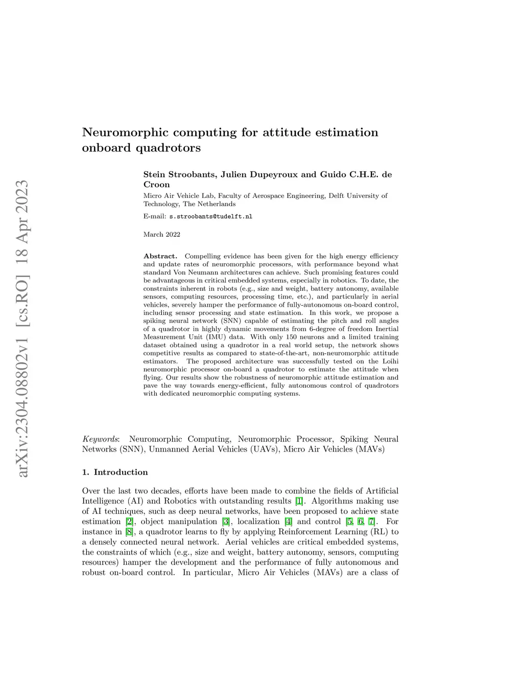 Neuromorphic computing for attitude estimation onboard quadrotors