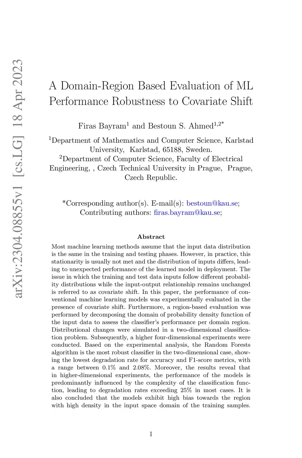 Most machine learning methods assume that the input data distribution is the same in the training and testing phases. However, in practice, this stationarity is usually not met and the distribution of inputs differs, leading to unexpected performance of the learned model in deployment. The issue in which the training and test data inputs follow different probability distributions while the input-output relationship remains unchanged is referred to as covariate shift. In this paper, the performance of conventional machine learning models was experimentally evaluated in the presence of covariate shift. Furthermore, a region-based evaluation was performed by decomposing the domain of probability density function of the input data to assess the classifier's performance per domain region. Distributional changes were simulated in a two-dimensional classification problem. Subsequently, a higher four-dimensional experiments were conducted. Based on the experimental analysis, the Random Forests algorithm is the most robust classifier in the two-dimensional case, showing the lowest degradation rate for accuracy and F1-score metrics, with a range between 0.1% and 2.08%. Moreover, the results reveal that in higher-dimensional experiments, the performance of the models is predominantly influenced by the complexity of the classification function, leading to degradation rates exceeding 25% in most cases. It is also concluded that the models exhibit high bias towards the region with high density in the input space domain of the training samples.