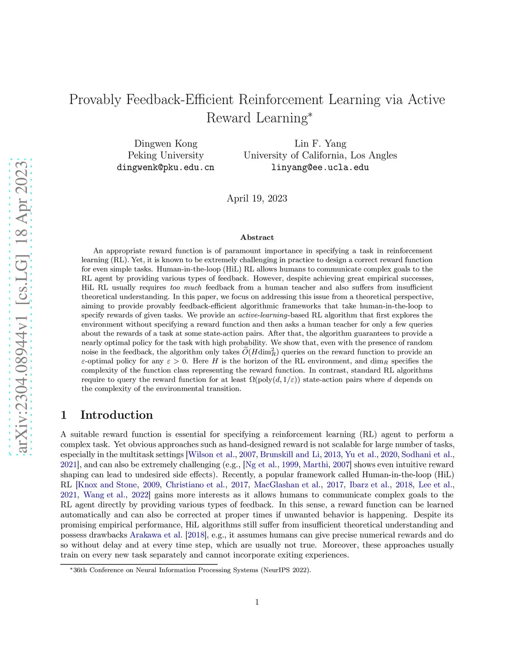 Provably Feedback-Efficient Reinforcement Learning via Active Reward