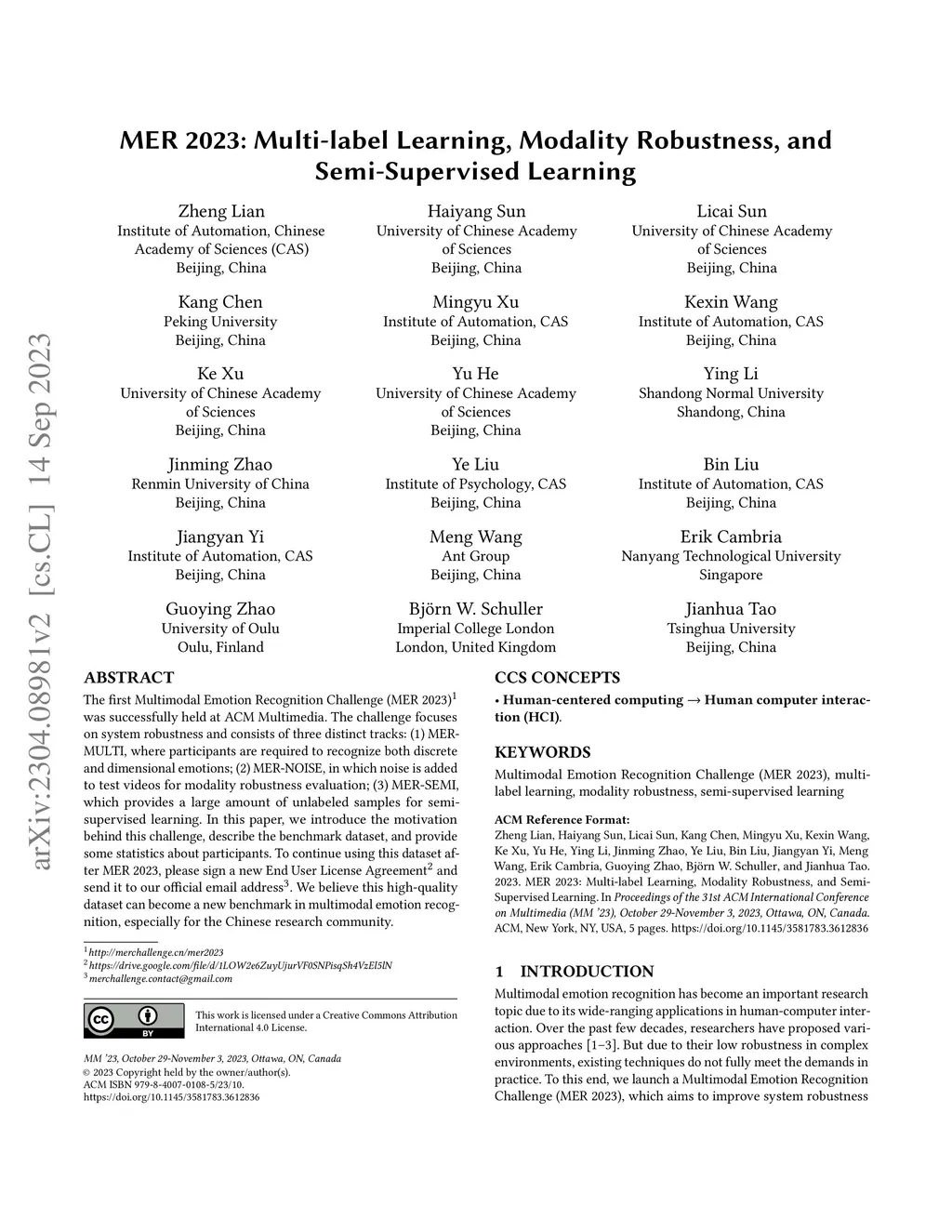 MER 2023: Multi-label Learning, Modality Robustness, and Semi-Supervised