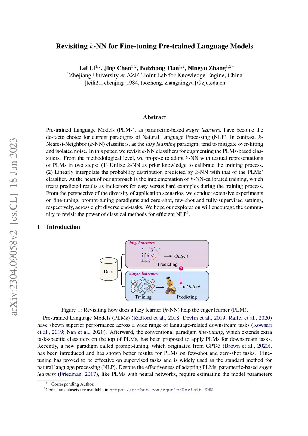 Pre-trained Language Models (PLMs), as parametric-based eager learners, have become the de-facto choice for current paradigms of Natural Language Processing (NLP). In contrast, k-Nearest-Neighbor (kNN) classifiers, as the lazy learning paradigm, tend to mitigate over-fitting and isolated noise. In this paper, we revisit kNN classifiers for augmenting the PLMs-based classifiers. From the methodological level, we propose to adopt kNN with textual representations of PLMs in two steps: (1) Utilize kNN as prior knowledge to calibrate the training process. (2) Linearly interpolate the probability distribution predicted by kNN with that of the PLMs' classifier. At the heart of our approach is the implementation of kNN-calibrated training, which treats predicted results as indicators for easy versus hard examples during the training process. From the perspective of the diversity of application scenarios, we conduct extensive experiments on fine-tuning, prompt-tuning paradigms and zero-shot, few-shot and fully-supervised settings, respectively, across eight diverse end-tasks. We hope our exploration will encourage the community to revisit the power of classical methods for efficient NLP. Code and datasets are available in https://github.com/zjunlp/Revisit-KNN.