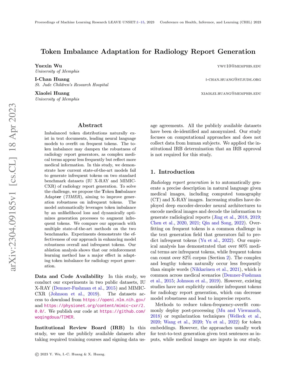 Token Imbalance Adaptation for Radiology Report Generation