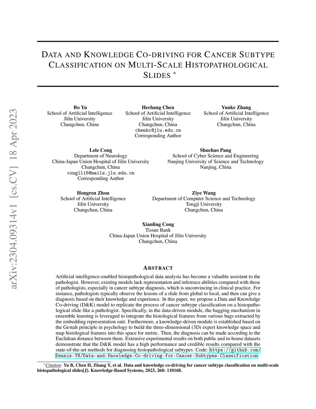 Data and Knowledge Co-driving for Cancer Subtype Classification on