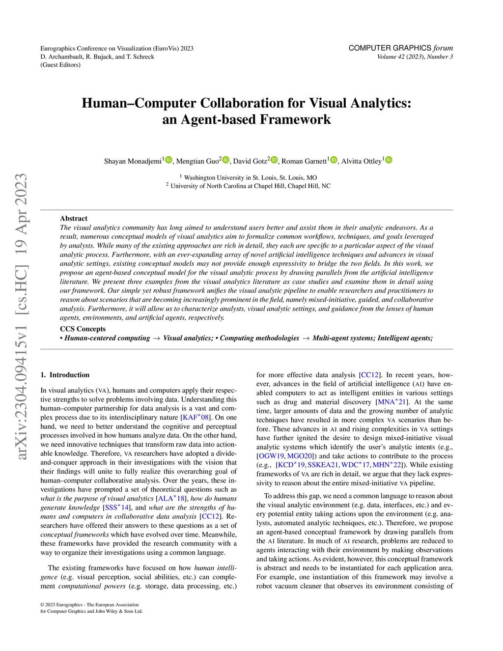 Human-Computer Collaboration for Visual Analytics: an Agent-based