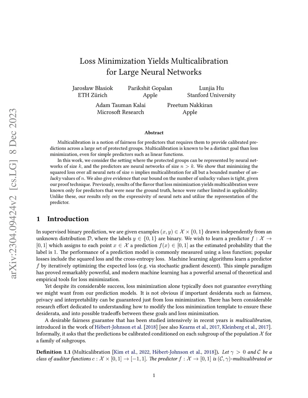 Loss Minimization Yields Multicalibration for Large Neural Networks