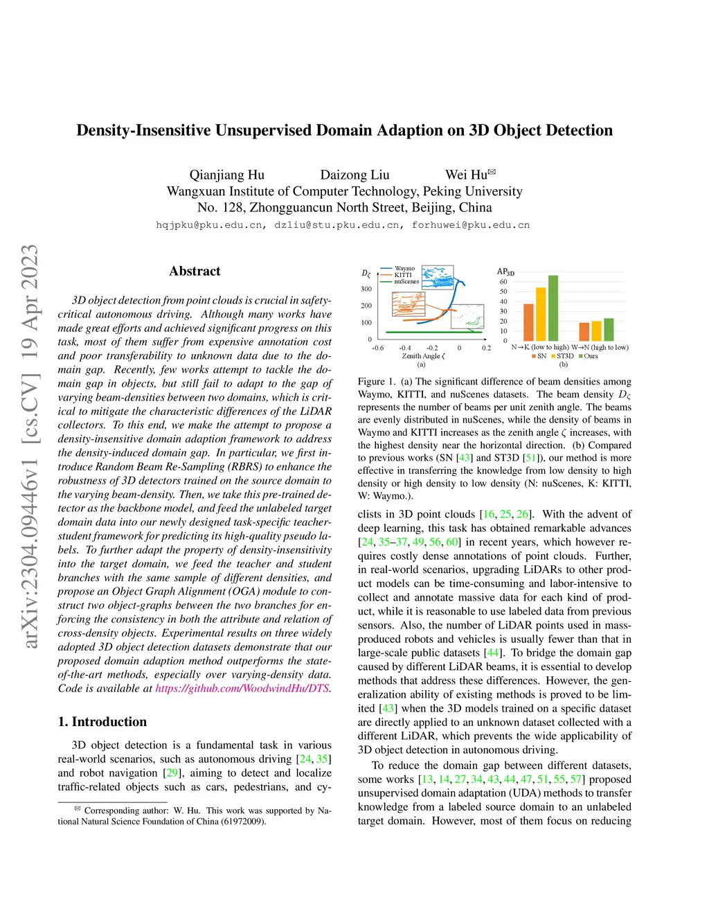 Density-Insensitive Unsupervised Domain Adaption on 3D Object Detection