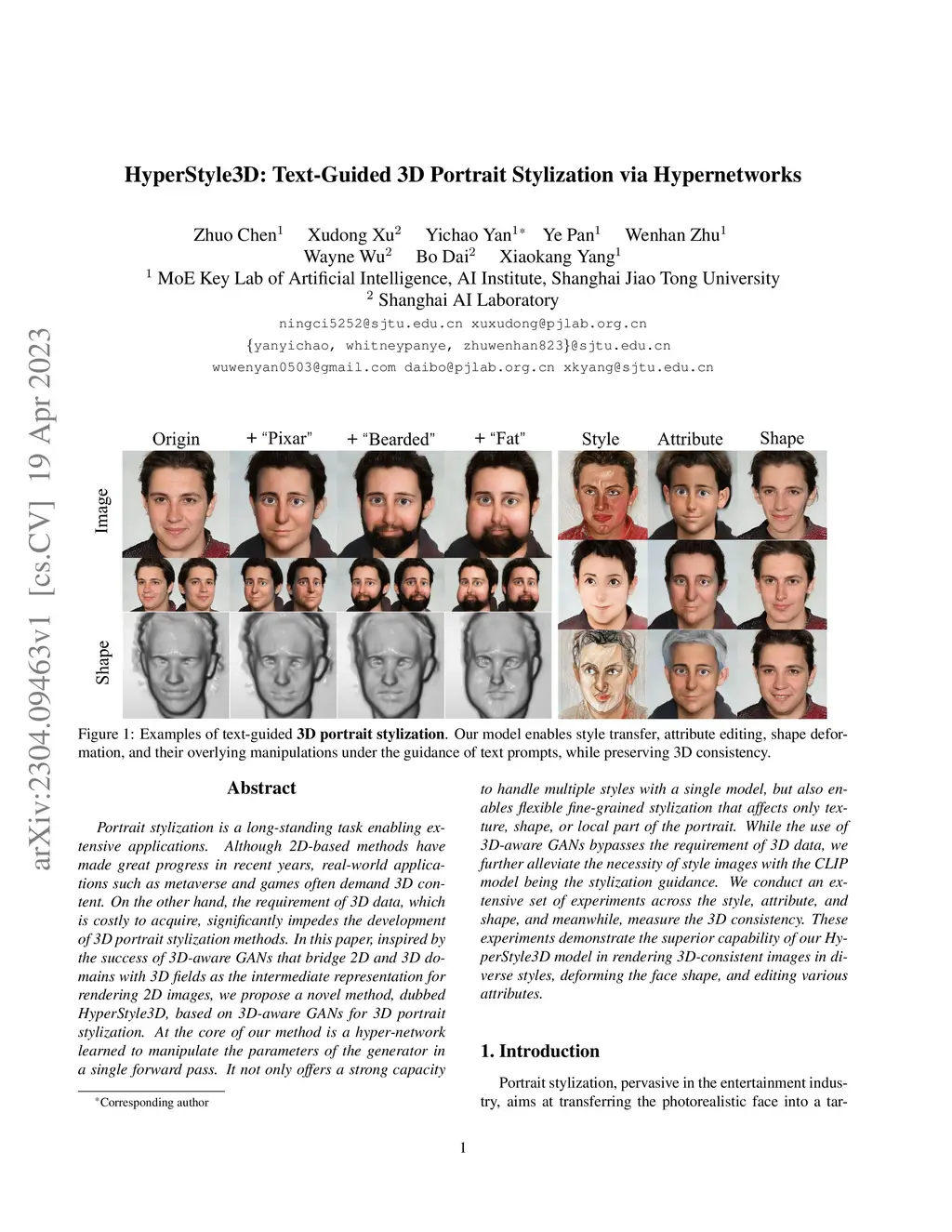 HyperStyle3D: Text-Guided 3D Portrait Stylization via Hypernetworks