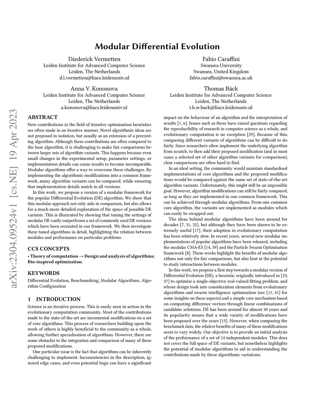 New contributions in the field of iterative optimisation heuristics are often made in an iterative manner. Novel algorithmic ideas are not proposed in isolation, but usually as an extension of a preexisting algorithm. Although these contributions are often compared to the base algorithm, it is challenging to make fair comparisons between larger sets of algorithm variants. This happens because even small changes in the experimental setup, parameter settings, or implementation details can cause results to become incomparable. Modular algorithms offer a way to overcome these challenges. By implementing the algorithmic modifications into a common framework, many algorithm variants can be compared, while ensuring that implementation details match in all versions. In this work, we propose a version of a modular framework for the popular Differential Evolution (DE) algorithm. We show that this modular approach not only aids in comparison, but also allows for a much more detailed exploration of the space of possible DE variants. This is illustrated by showing that tuning the settings of modular DE vastly outperforms a set of commonly used DE versions which have been recreated in our framework. We then investigate these tuned algorithms in detail, highlighting the relation between modules and performance on particular problems.