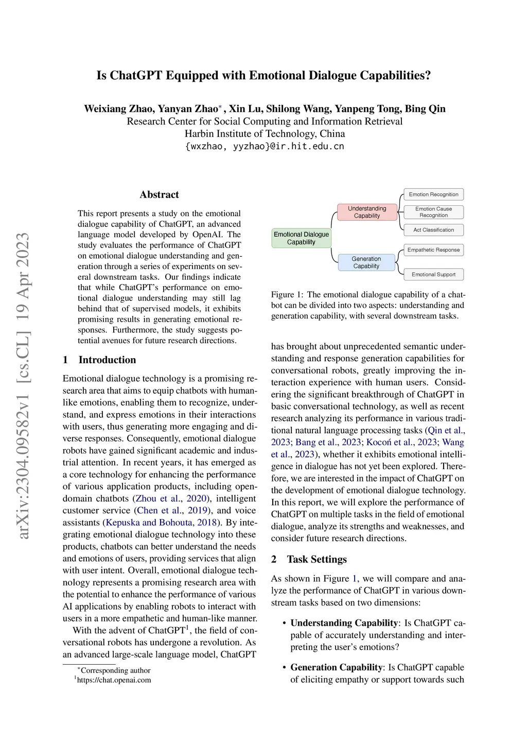 This report presents a study on the emotional dialogue capability of ChatGPT, an advanced language model developed by OpenAI. The study evaluates the performance of ChatGPT on emotional dialogue understanding and generation through a series of experiments on several downstream tasks. Our findings indicate that while ChatGPT's performance on emotional dialogue understanding may still lag behind that of supervised models, it exhibits promising results in generating emotional responses. Furthermore, the study suggests potential avenues for future research directions.